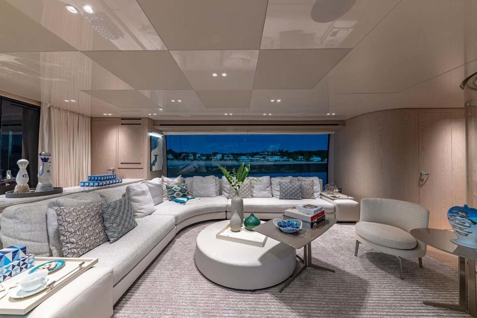 From the deck you can access the main salon through glass doors and the lower deck beach club. The foredeck is very spacious with sun pads and flexible table/chairs.