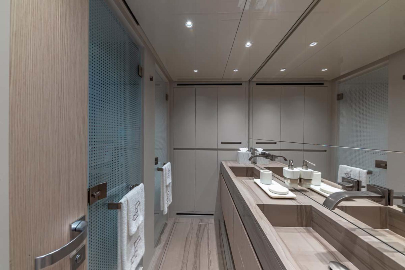 All the cabins benefit from the luxury and privacy of ensuite bathroom facilities, and the master also has a walk in wardrobe, double vanity and direct access to the beach club. Tenders & Toys: