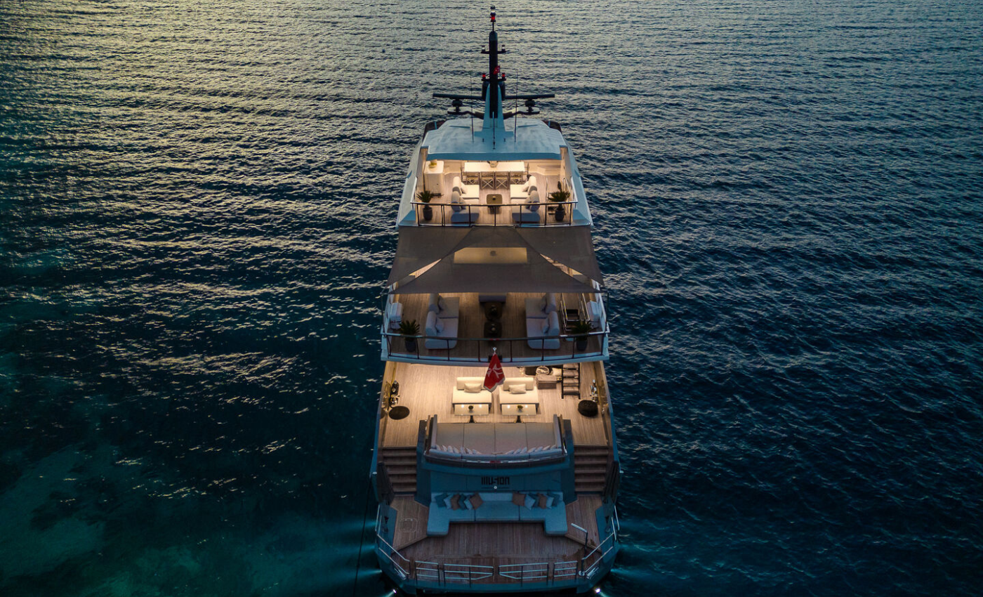 Mia Bella, Sky, Reef Chief, Big Chief) is a 40m (131’2”) Lloyds Ships luxury charter vessel with naval architecture and exterior design by Phil Curran Design and interior design by Modus Mimarlik. She was originally built in 1990 and has benefitted from a 2023 refit which has left no details overlooked.