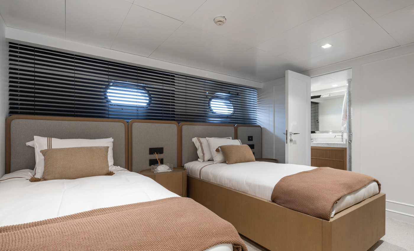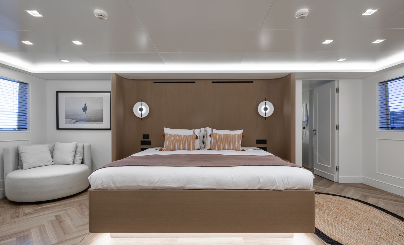 Mia Bella, Sky, Reef Chief, Big Chief) is a 40m (131’2”) Lloyds Ships luxury charter vessel with naval architecture and exterior design by Phil Curran Design and interior design by Modus Mimarlik. She was originally built in 1990 and has benefitted from a 2023 refit which has left no details overlooked.