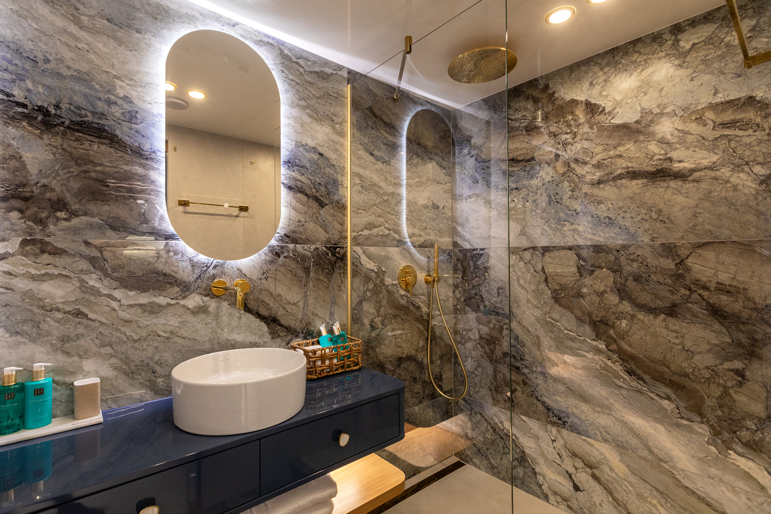 NOTABLE FEATURES OF SCORPIOS: ~Vast deck spaces ~On-deck jacuzzi ~Choice of exterior lounge and dining spaces ~Fold out balcony ~Stylish ...