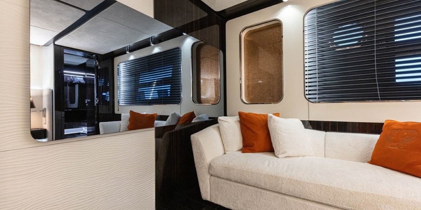 NOTABLE FEATURES OF MY LIFE FIVE II: ~Eye-catching silver hull and superstructure ~Sociable sun deck ~Aft sofa on swim platform ~Sophisticated interior ~Water toys ~Stabilisers underway and at anchor ~Air conditioning ...