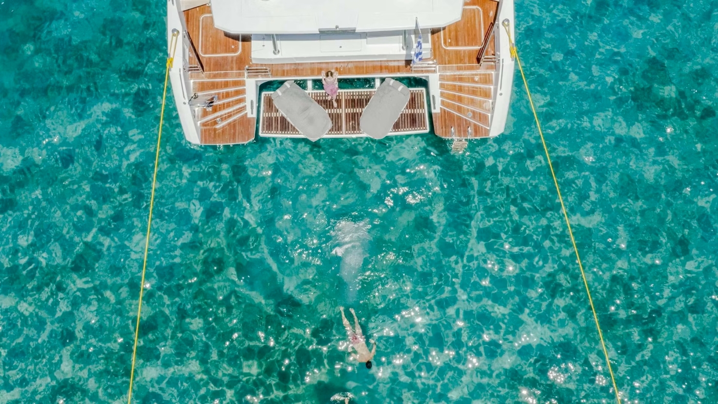 You won’t miss this stunning catamaran as she cruises across the water hosting her lucky guests.
