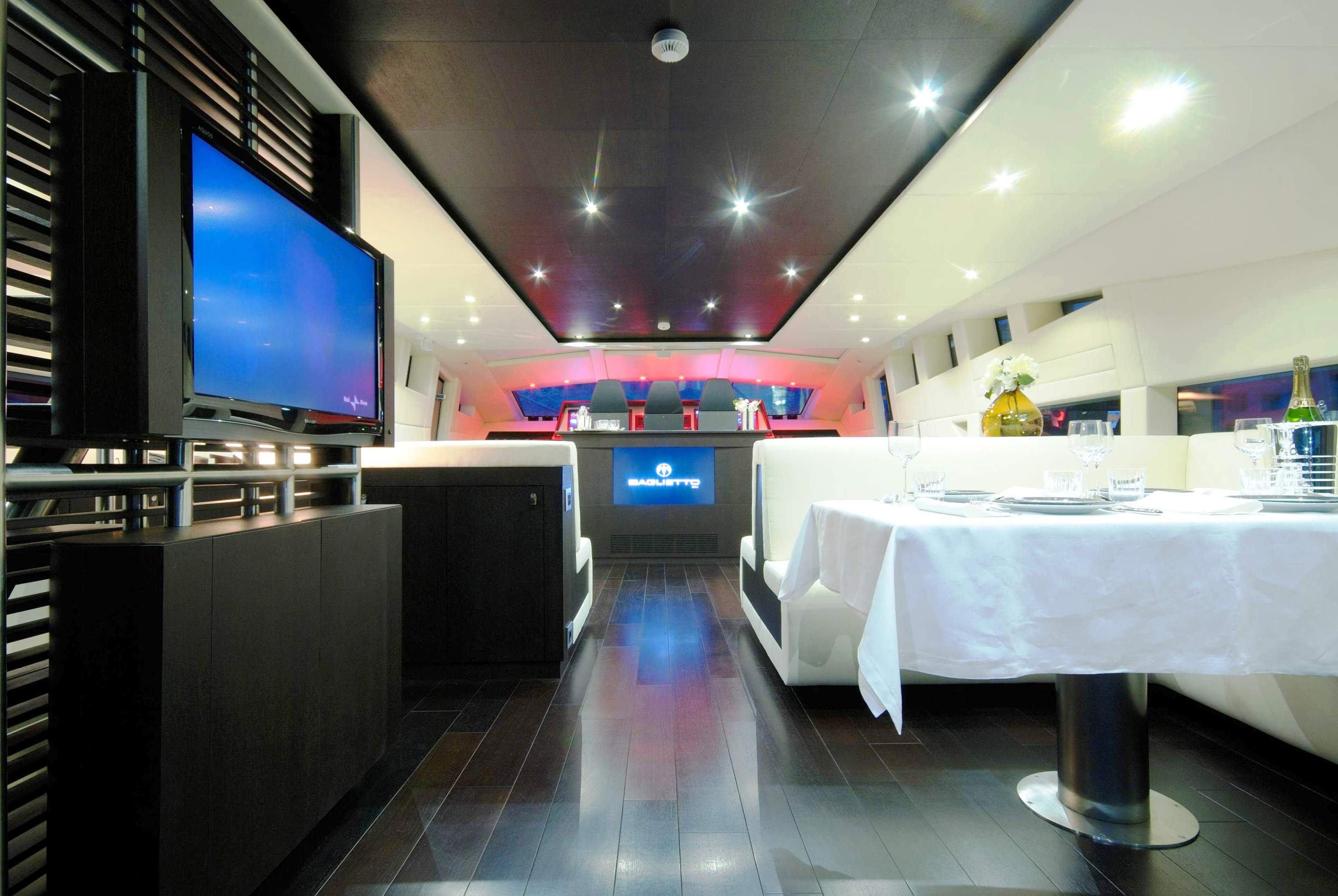 PURE INSANITY is a 2008 Baglietto 35m (114’) performance luxury motor yacht. With a sleek stylish and sporty exterior and 2 x MTU 12V 4000 M90 engines she is able to reach a top speed approaching 35 knots and a cruising speed of 25 knots.