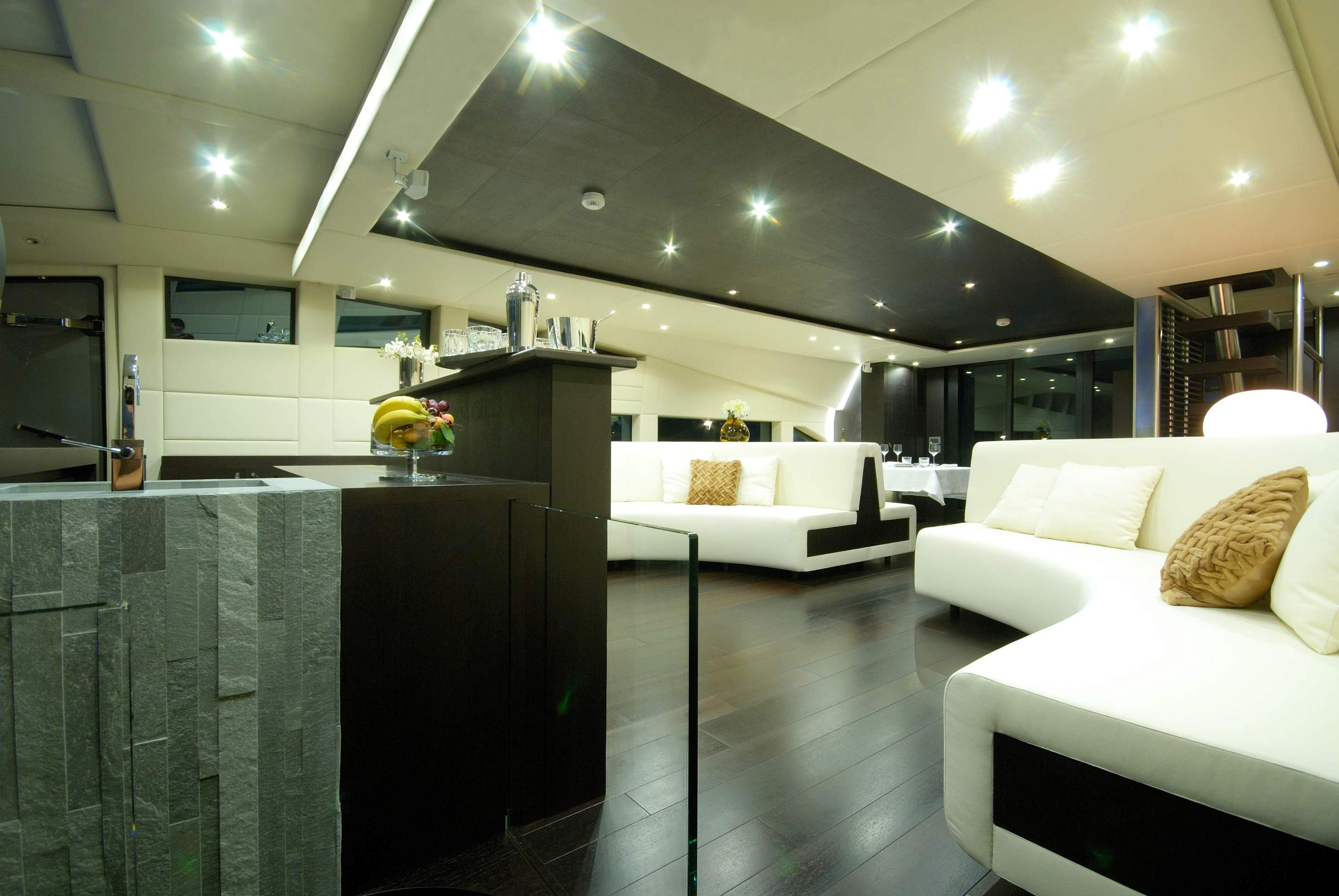 PURE INSANITY is a 2008 Baglietto 35m (114’) performance luxury motor yacht. With a sleek stylish and sporty exterior and 2 x MTU 12V 4000 M90 engines she is able to reach a top speed approaching 35 knots and a cruising speed of 25 knots.
