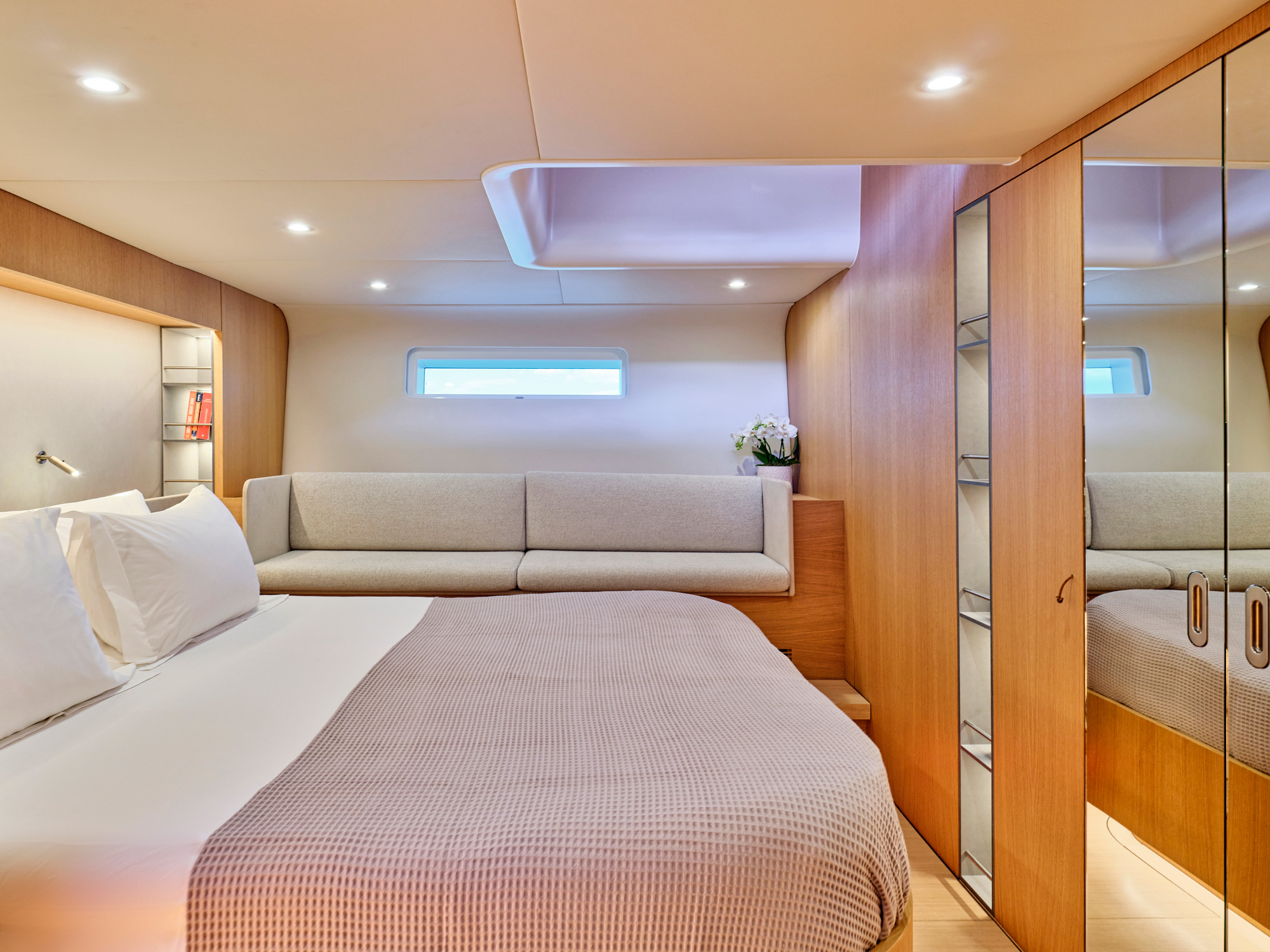 She can accommodate up to eight guests in four suites who will be looked after by a crew of three.