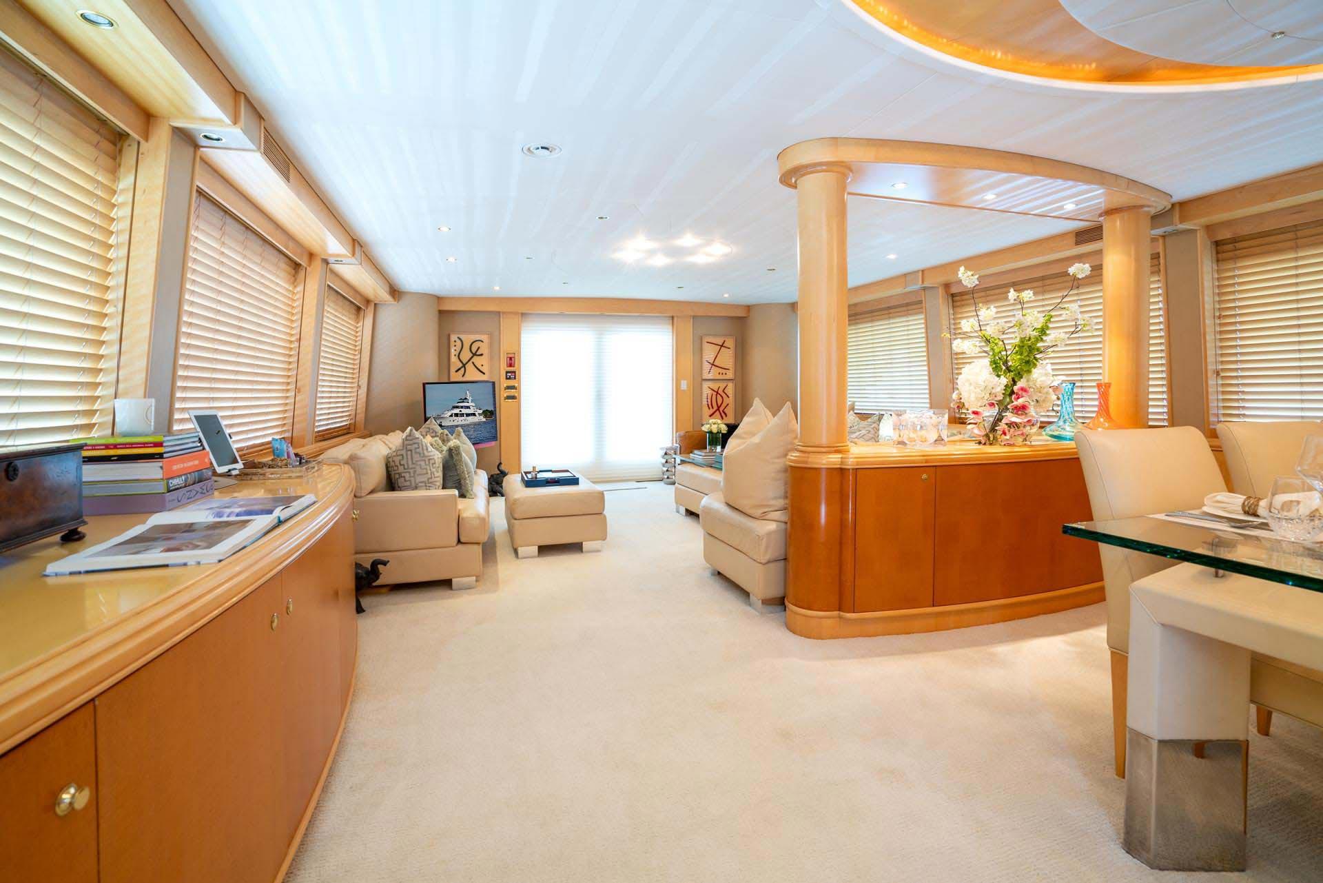On the foredeck are another two lounge areas, one just in front of the bridge and one sunken and ...