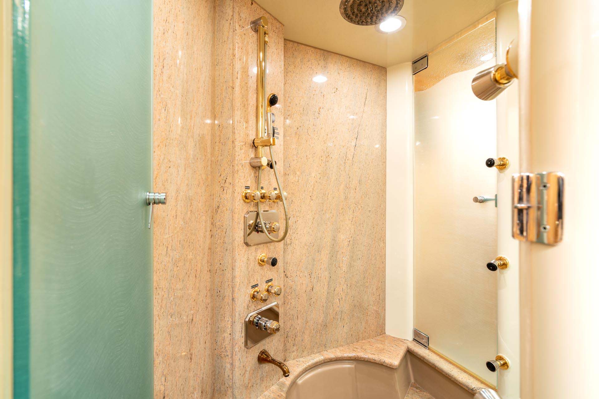 The yacht’s tender along with the hydraulic crane, freezers, emergency genset can also be found off the bridge deck aft.