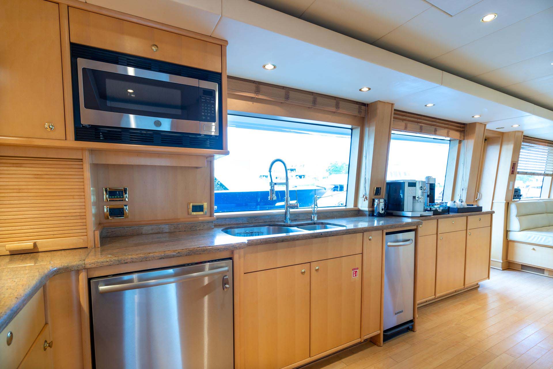 Forward of the salon and dining area to port is the galley and pantry which can be left open to the guests or closed if guests prefer