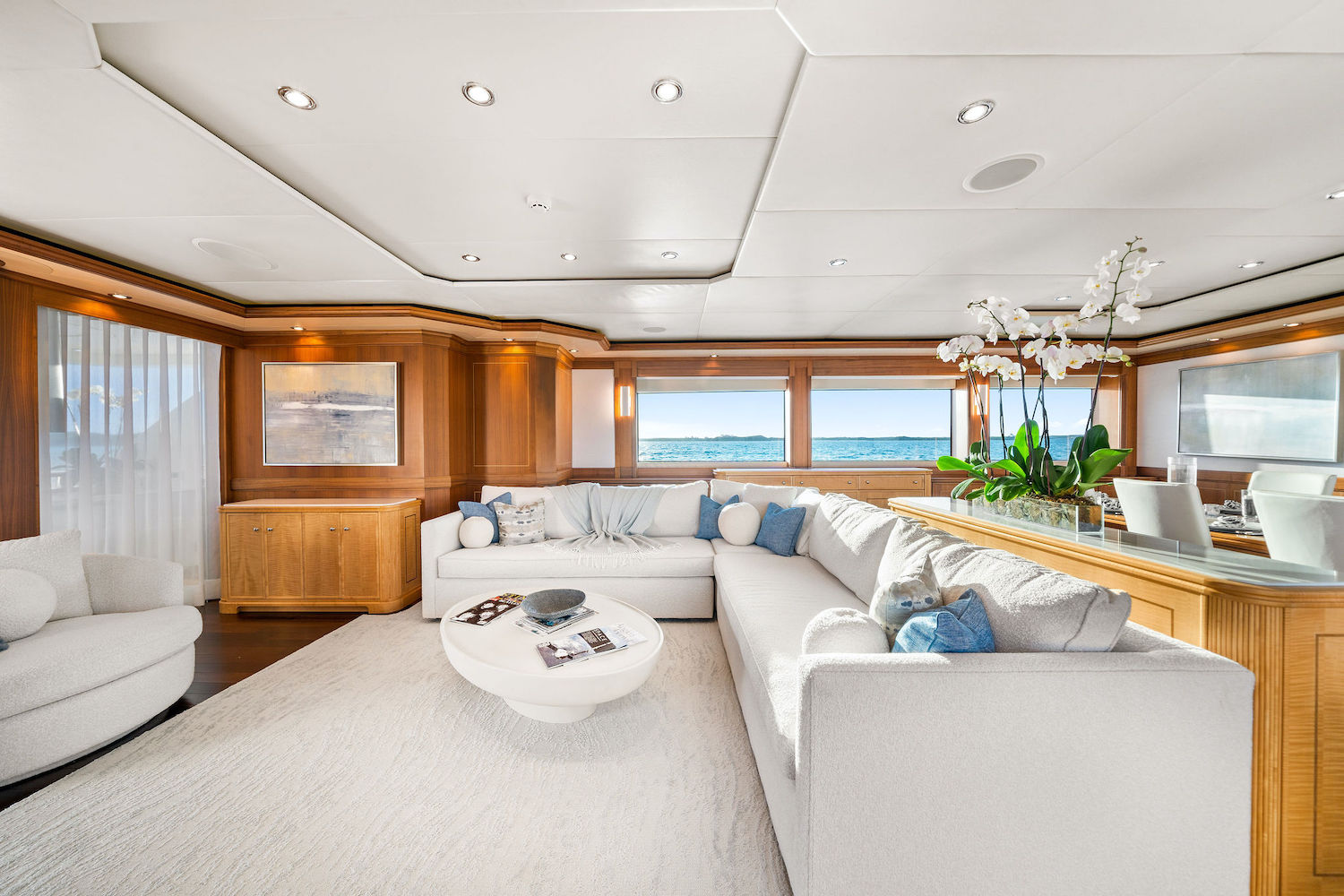 Guests will be delighted to spend time on the open flybridge sun deck with her circular jacuzzi, curved bar and 8-seater dining table.