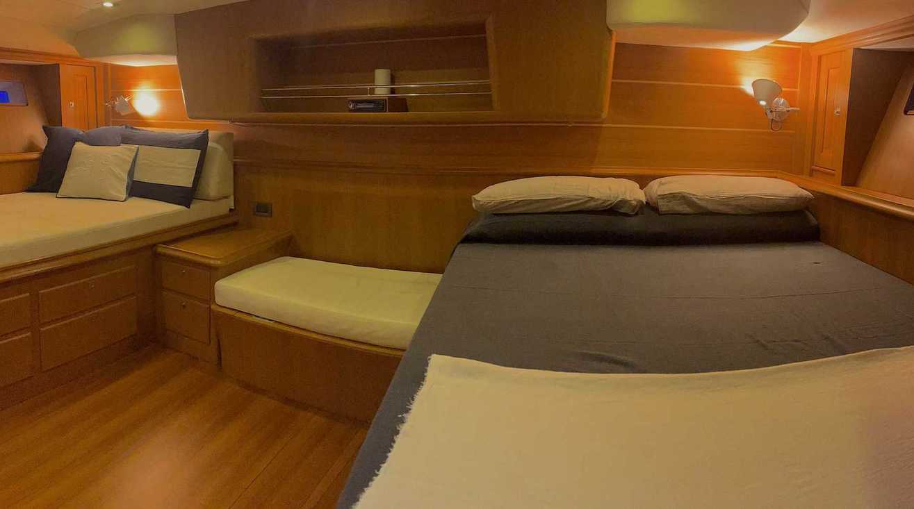 The guest accommodation is for up to eight guests in four cabins. Tenders & Toys