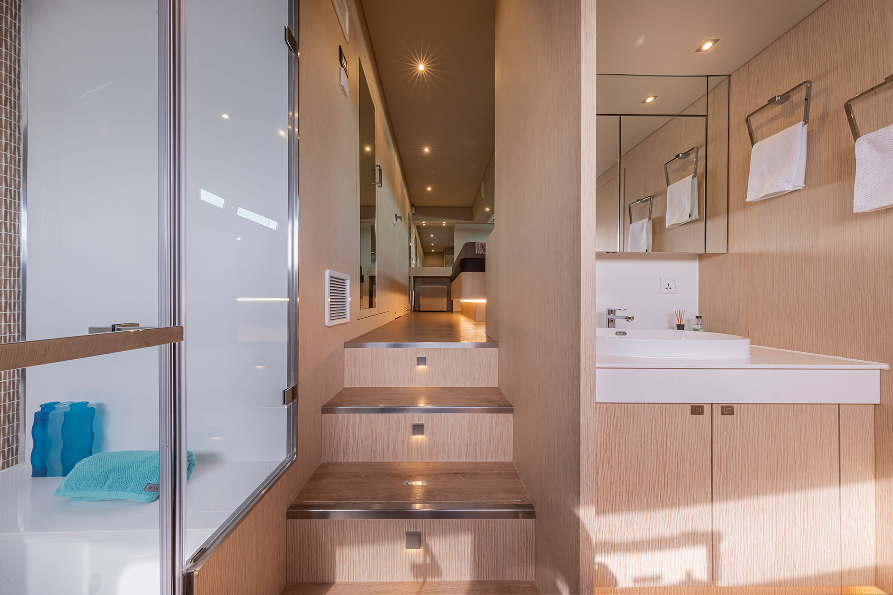 She can accommodate up to six guests in three suites who will be hosted by two professional crew members.
