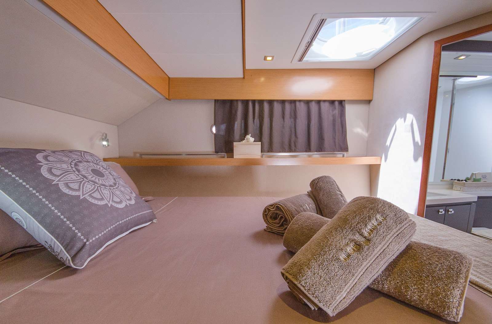 She is an elegant and innovative yacht with an ideal charter layout and is available for up to 10 guests in five suites with a crew of three.