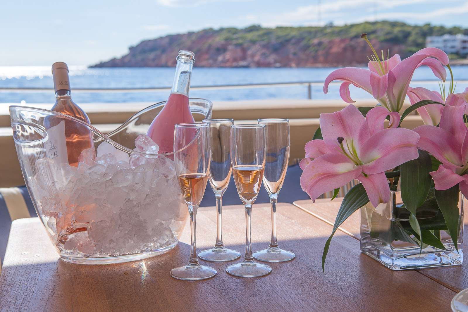 She is an elegant and innovative yacht with an ideal charter layout and is available for up to 10 guests in five suites with a crew of three.