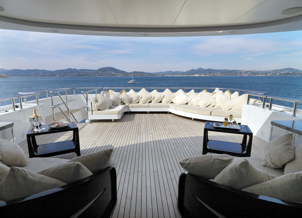 The extensive deck space for relaxing is surprising and the outdoor dining area joins to the main saloon to make a double lounging area.