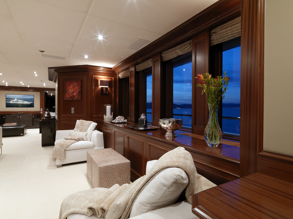 The yacht’s interior design is by Reymond Langton Design and can be described as modern and simple. MY LITTLE VIOLET is a contemporary yacht built in by the famous Abeking & Rasmussen yard in Germany.