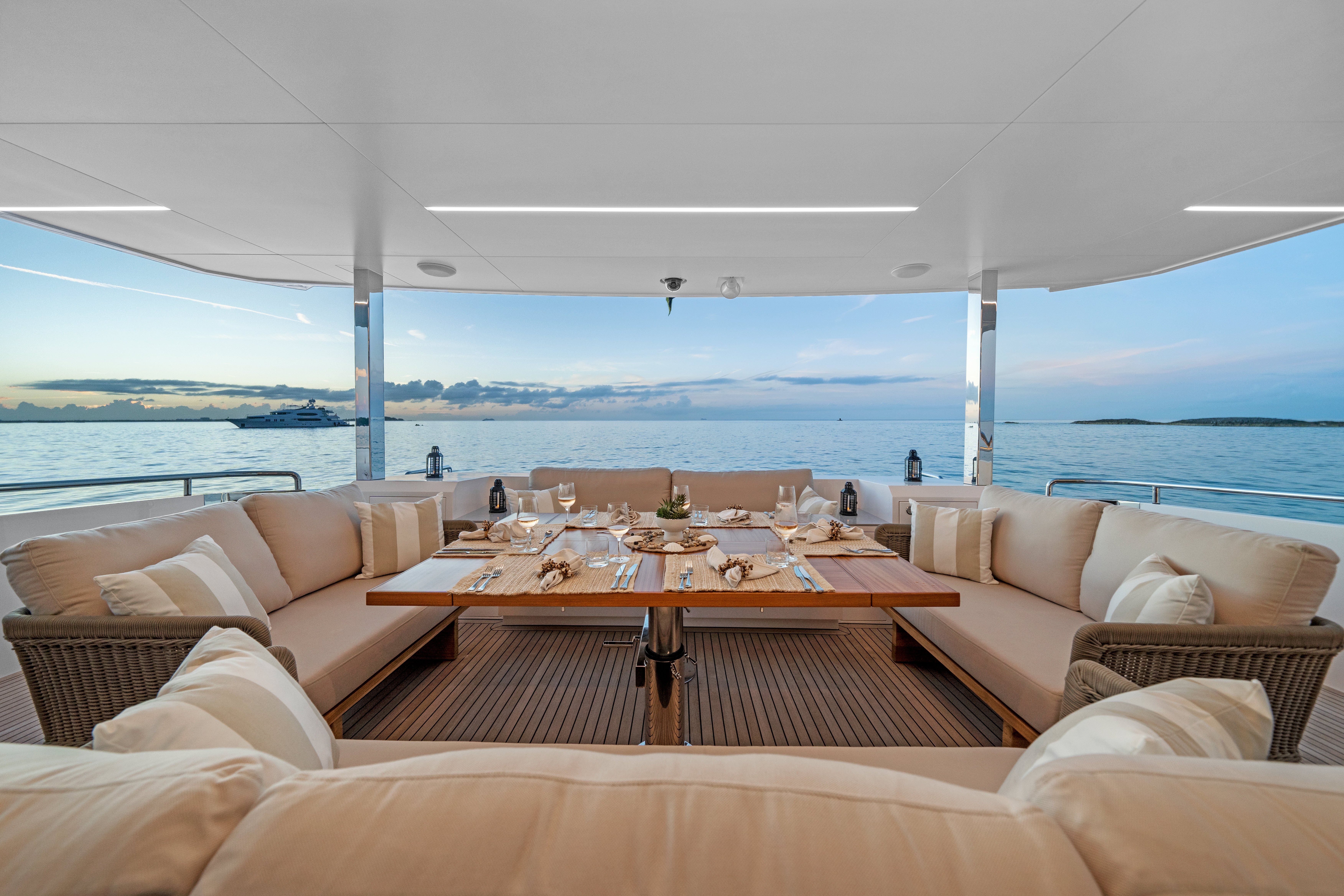 A deck jacuzzi and beautiful contemporary deck furniture finish off the exterior perfectly. The yacht can host up to 12 guests overnight in 5 deluxe cabins and has an attentive crew of 4.