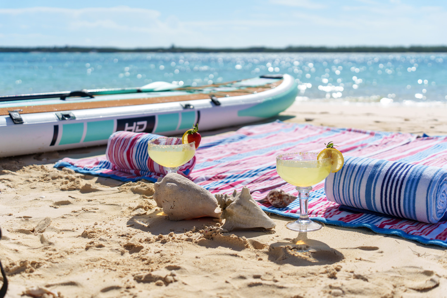 Down a few gentle steps on each side finds the wide swim platform from where the crew will launch the selection of water toys.