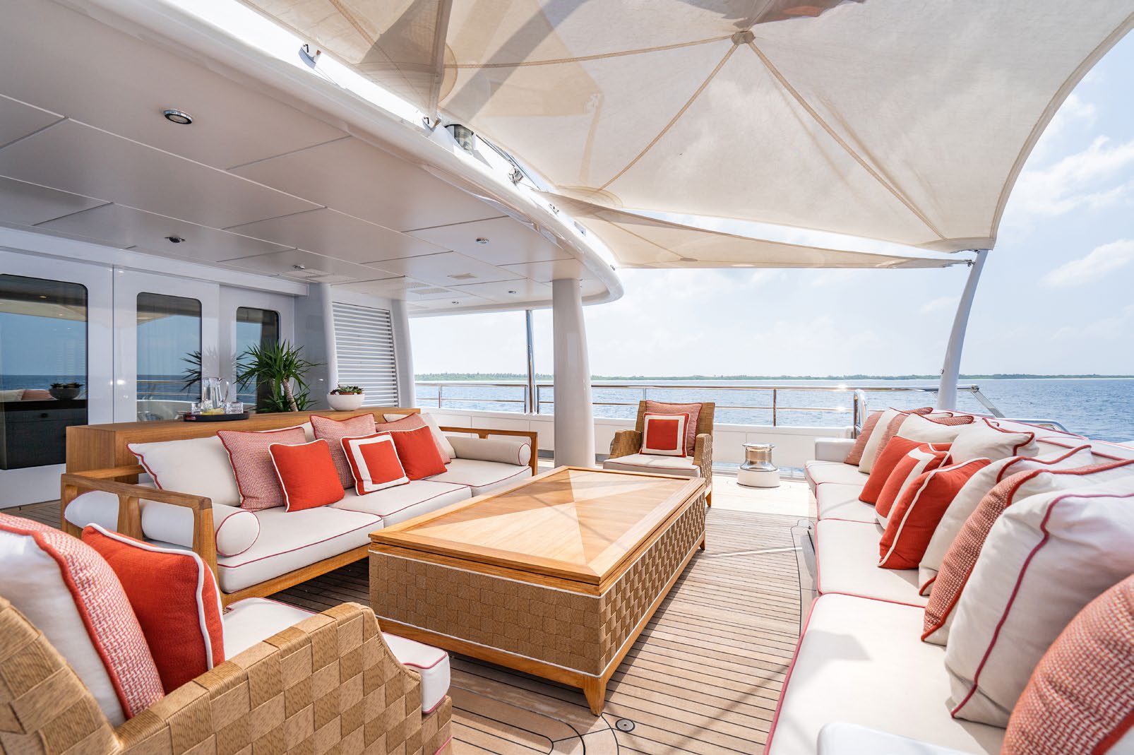 The modern interiors are the work of Laura Sessa and the accommodation sleeps a maximum of 12 guests over six en-suite cabins, with a crew of 13 to take care of everyone on board.