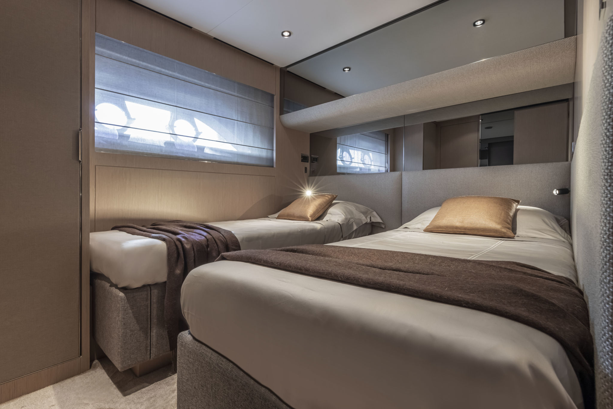 Her contemporary deck furnishings and light bright interior will be the perfect host for up to eight guests in four suites. Three crew members on board will look after guests throughout.