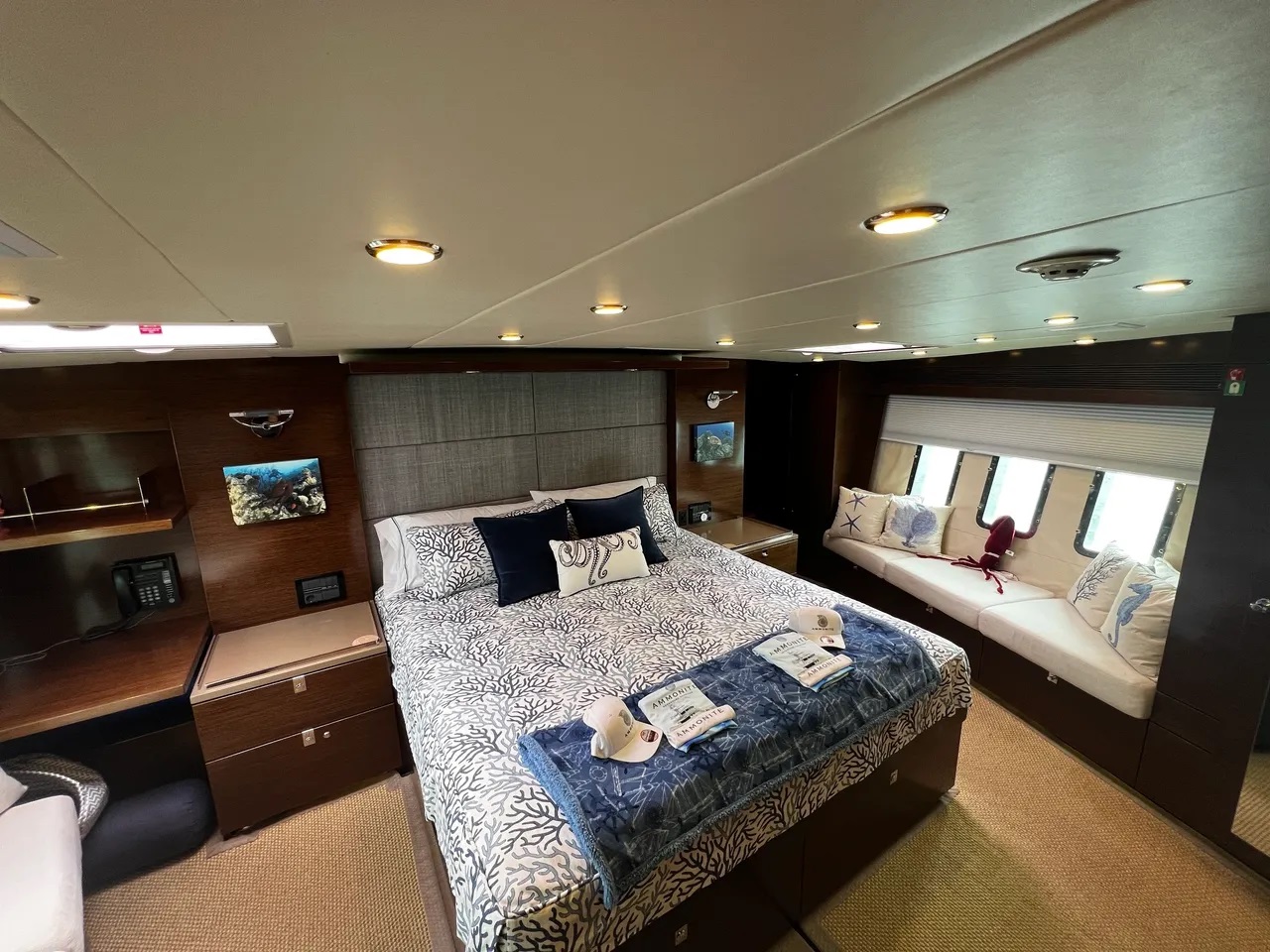 On the lower deck guests can relax in a choice of three suites including a very spacious master with king-sized bed, window seats on either side and a beautiful ensuite with shower and full spa bathtub. There are two more double suites, one with an additional pullman bunk, ideal for kids.