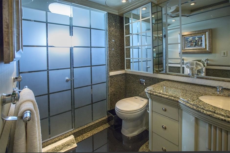 Accommodation is offered is 5 cabins for 10 guests. The master stateroom is a full-beam size and has an office startboard. There is also a walk-around king bed with couch, vanity, walk-in closet, and his and her en-suite bathroom ...