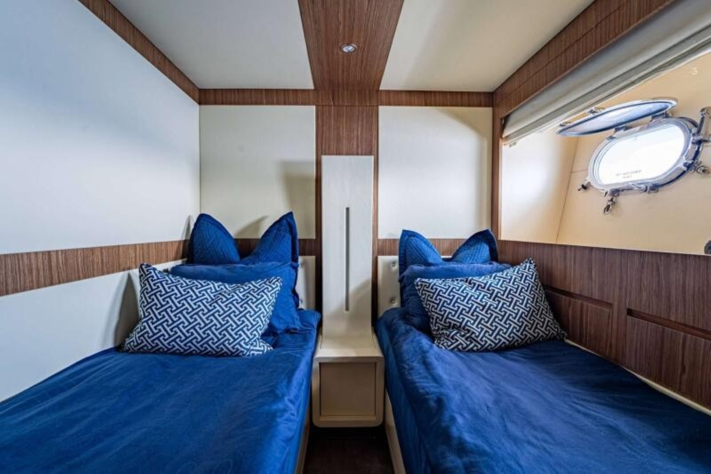 Designed by Paolo Caliari with interior design by Denise van Rijmenam, she offers guest accommodation for up to eight guests in 4 suites and cabins for four crew members.