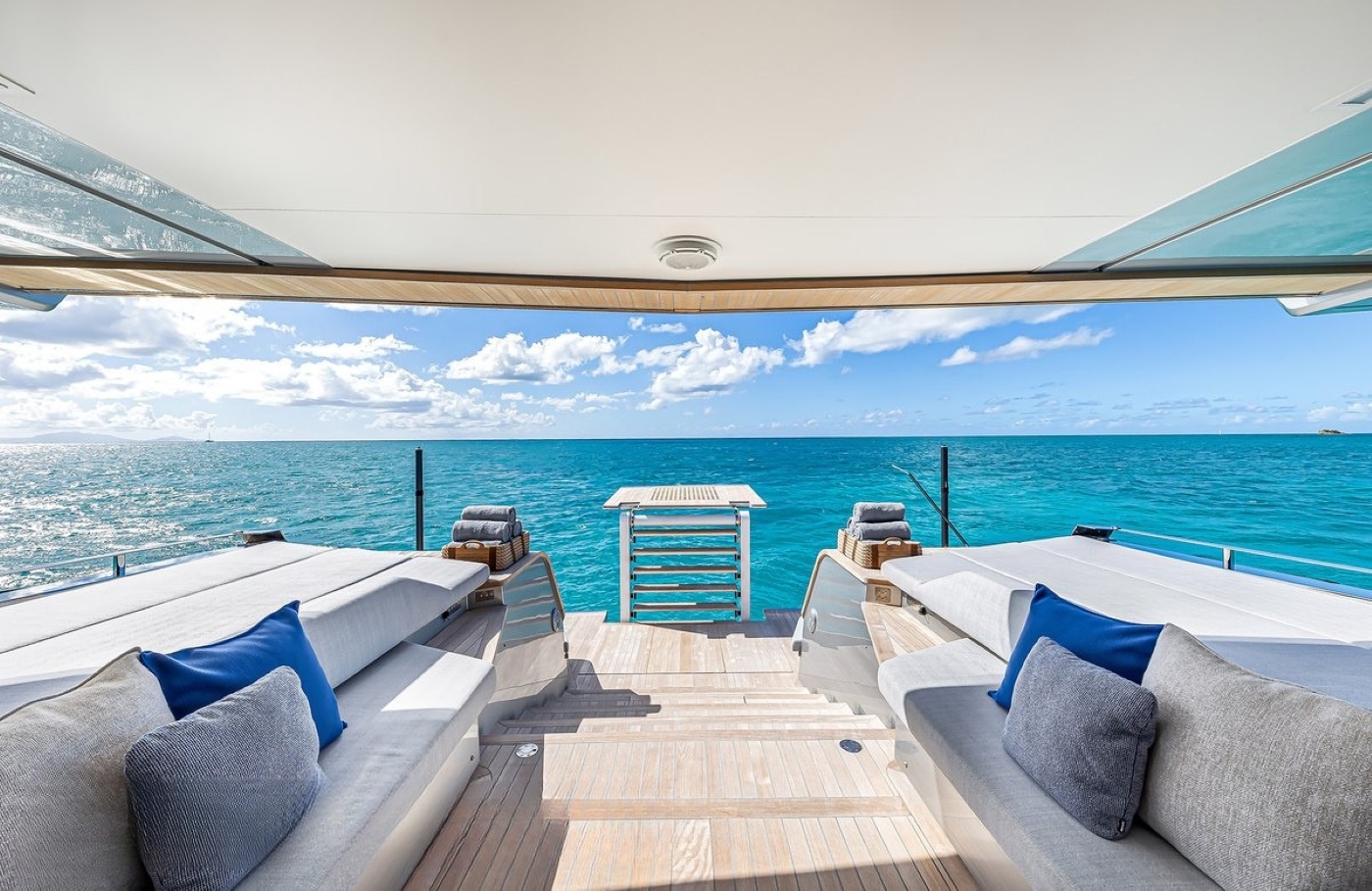 NOTABLE FEATURES OF BAD MUTHA: ~Beach club with fold-out ‘wings’ ~Bold futuristic exterior design ~4.7m bow ~Huge upper deck with signature glass dome ~Air conditioning ~WiFi