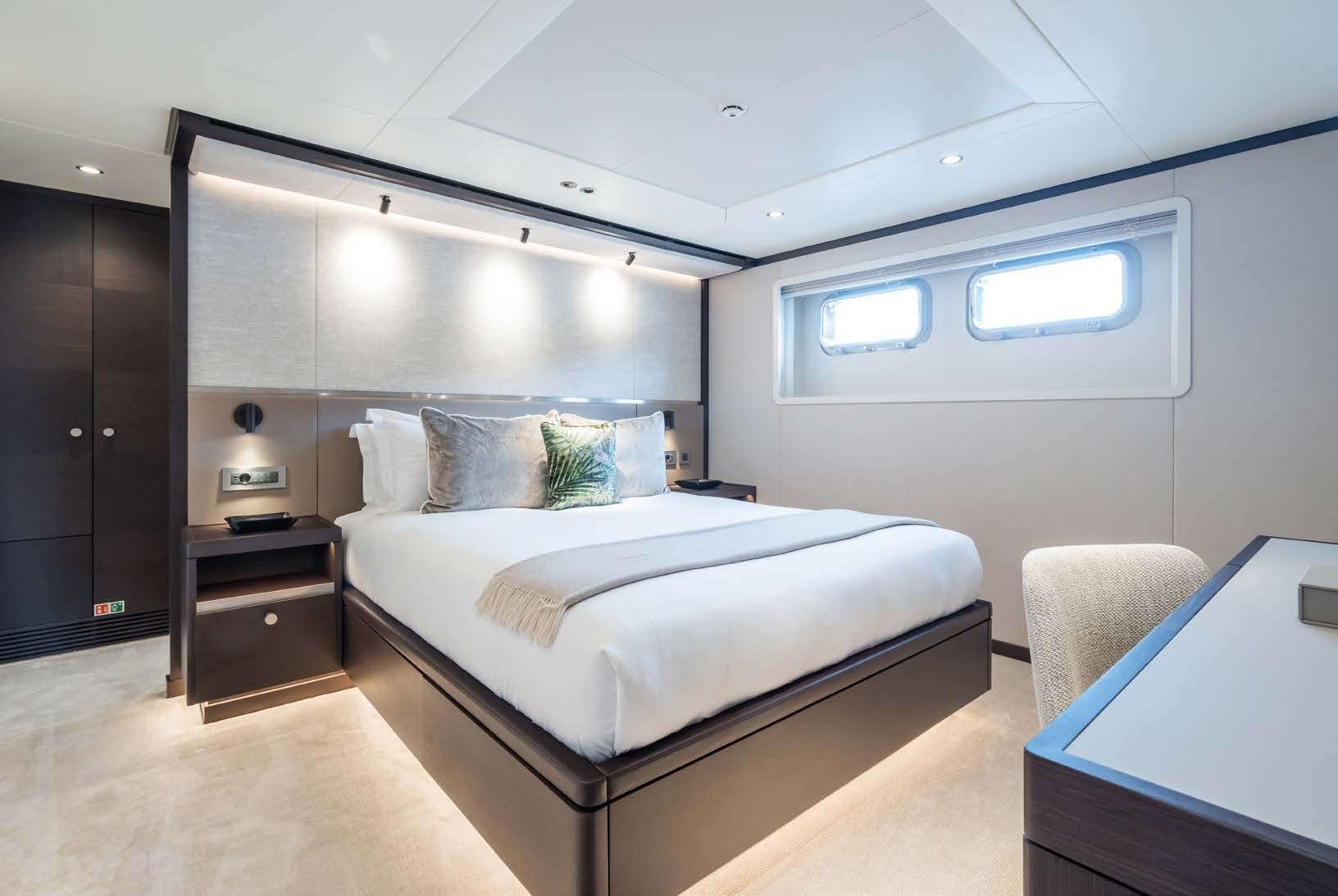 She can accommodate up to 12 guests in six staterooms and a further 10 crew in additional cabins plus a bridge deck captain's cabin.