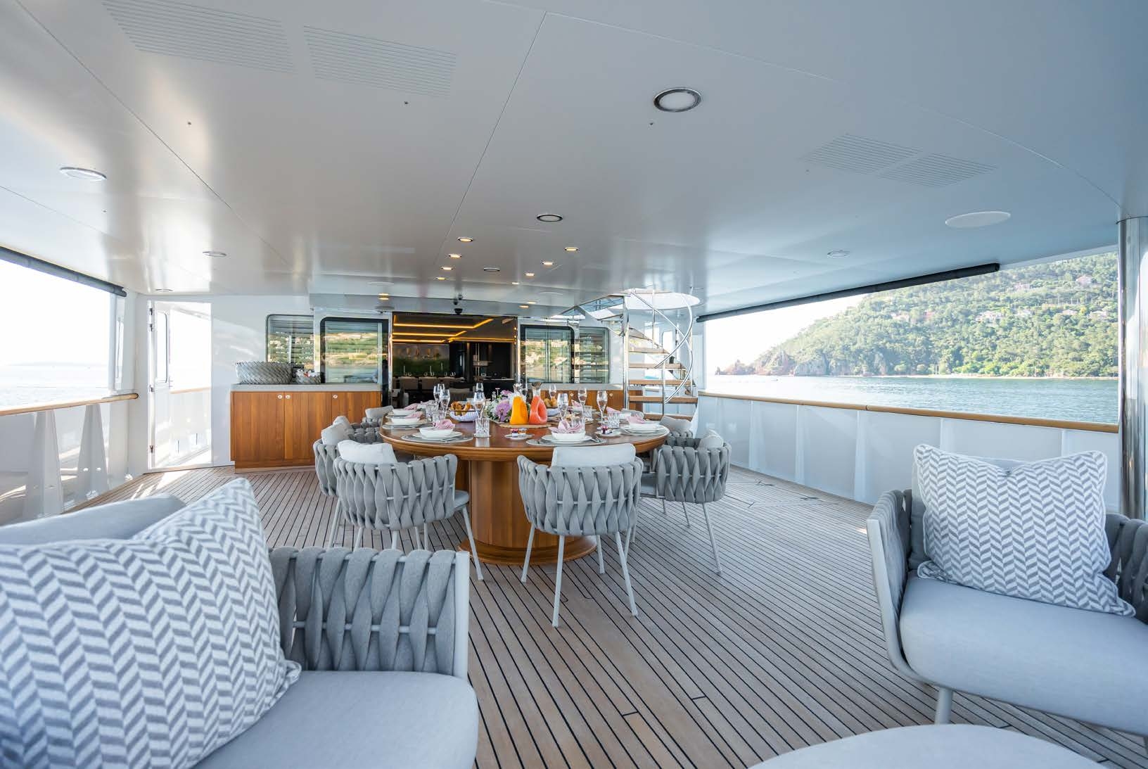 She can accommodate up to 12 guests in six staterooms and a further 10 crew in additional cabins plus a bridge deck captain's cabin.