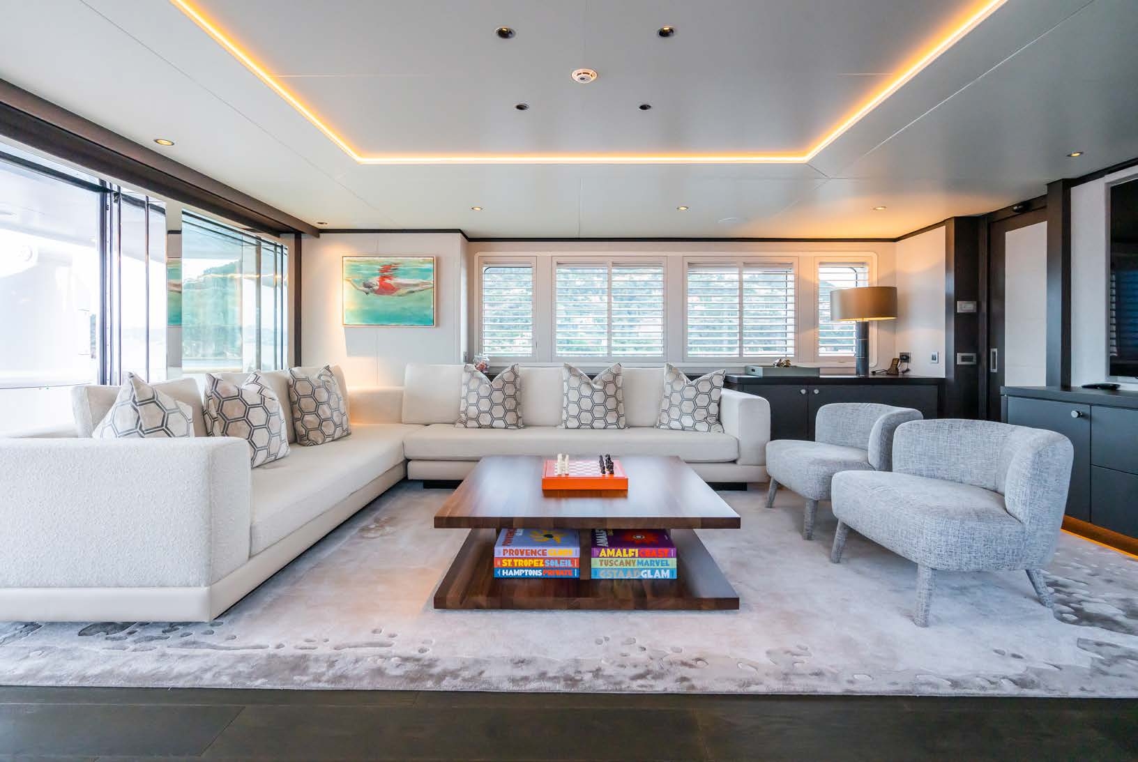 She can accommodate up to 12 guests in six staterooms and a further 10 crew in additional cabins plus a bridge deck captain's cabin.