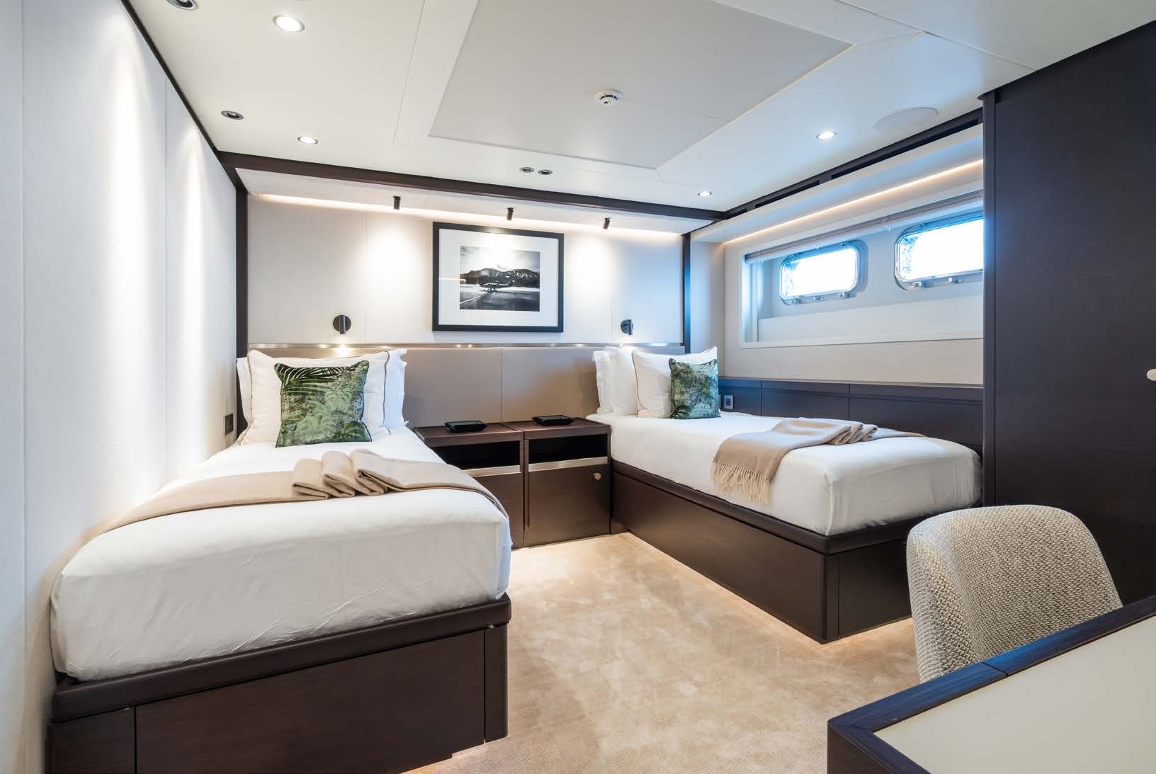 She can accommodate up to 12 guests in six staterooms and a further 10 crew in additional cabins plus a bridge deck captain's cabin.