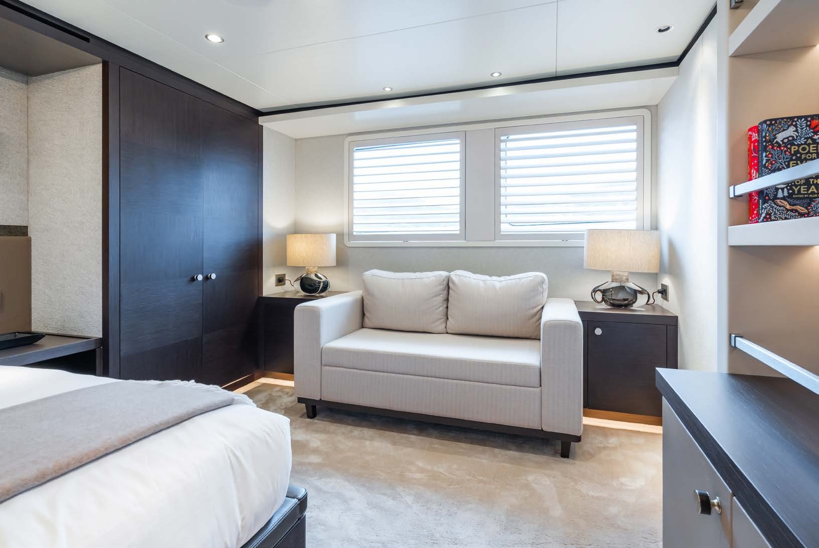 She now boasts a large jacuzzi on the sun deck which sits alongside a cosy seating area and wet bar. All the decks have been meticulously reclad in teak during the 2023 refit and the colour blends so well with the dark green hull and pearl-white superstructure.