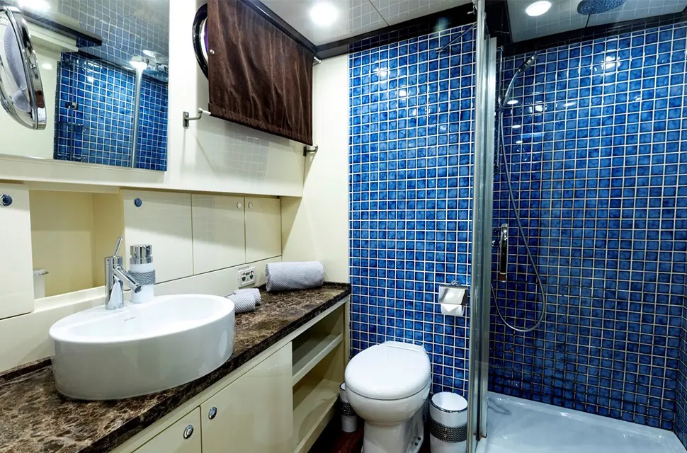 All the cabins benefit from the luxury and privacy of ensuite bathroom facilities. the crew accommodation is far forward on the lower deck with its own access. Tenders & Toys