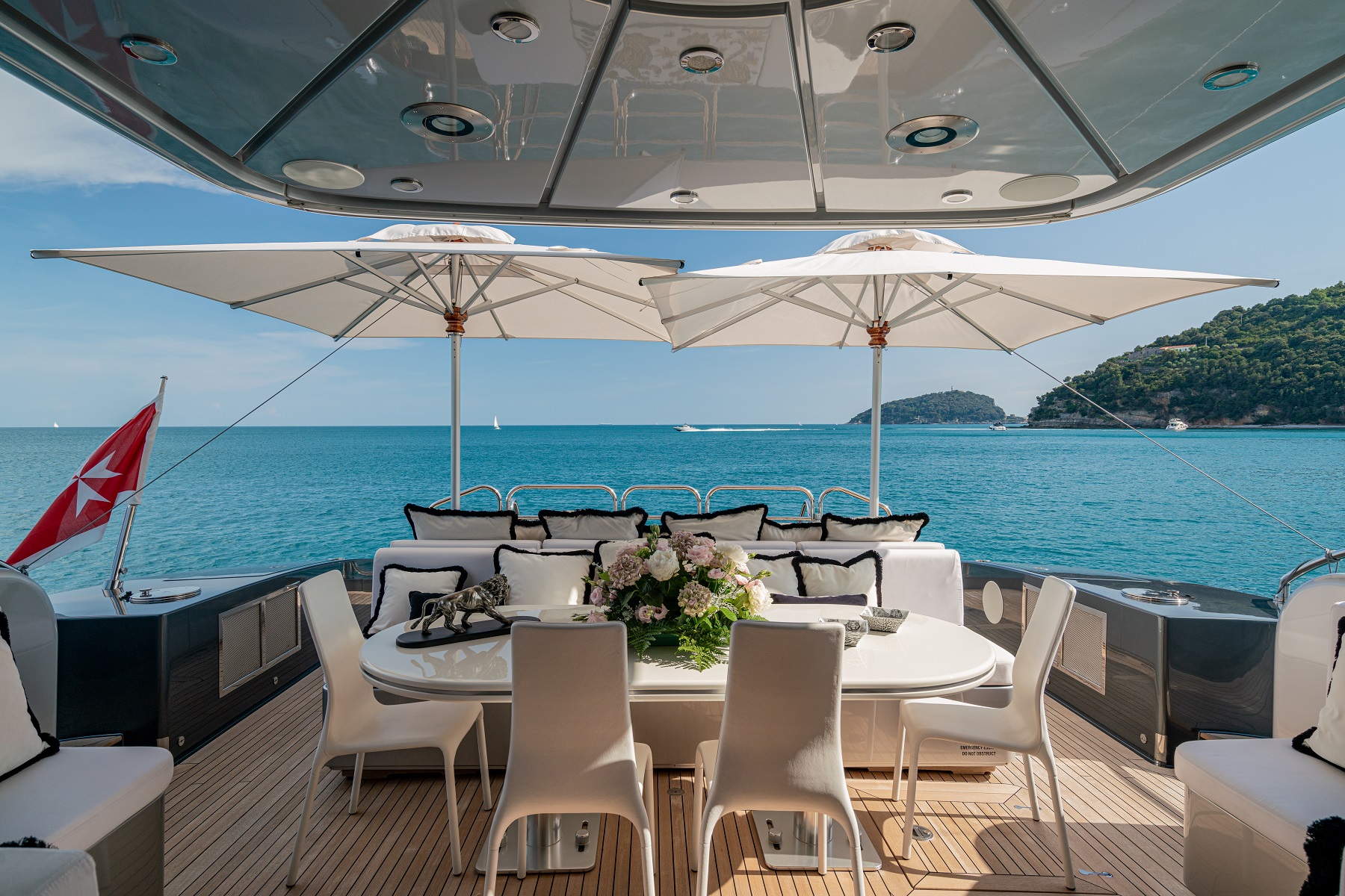 NOTABLE FEATURES OF MANU V: ~Sporty design with unique hull colouring ~Impressive 42-knot top speed ~Wide range of water toys ~Hydraulic swim platform ~Air conditioning ~WiFi