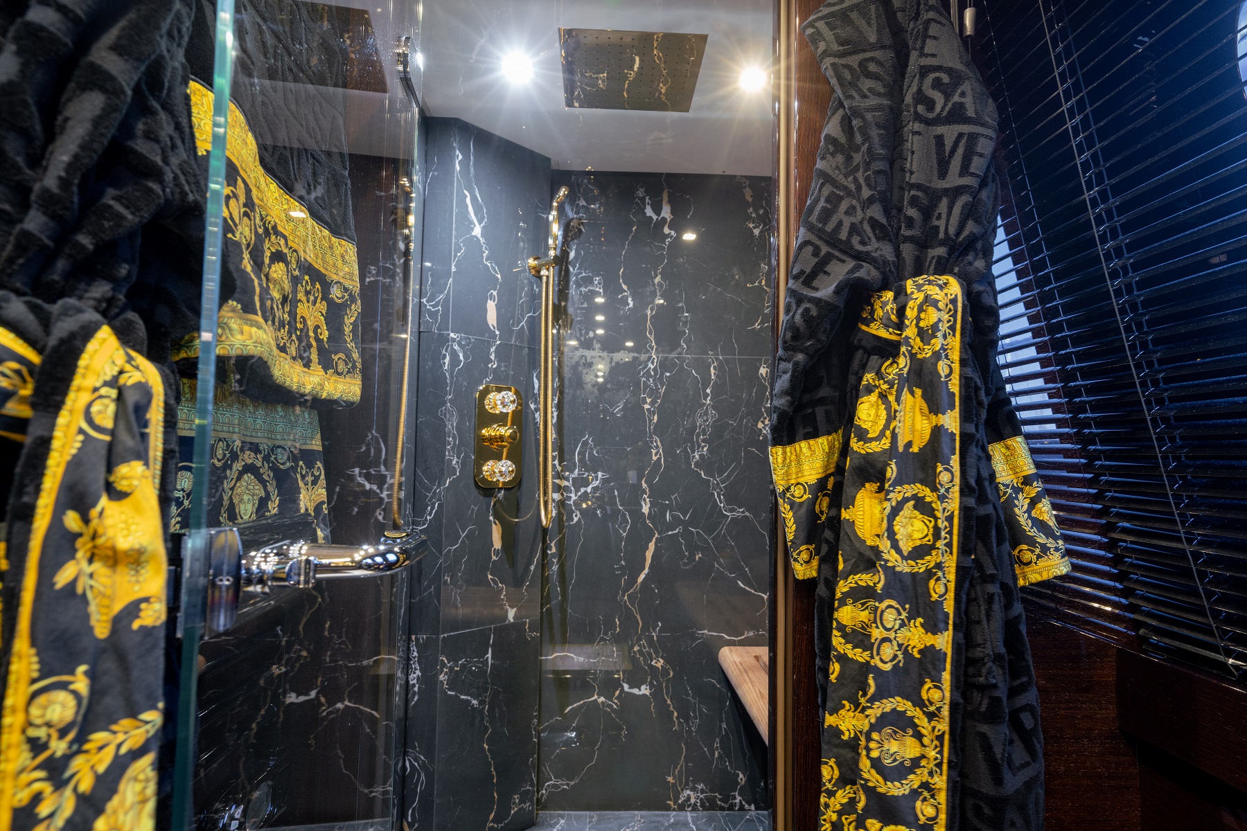 The accommodation is for 10 guests in 5 luxurious cabins, all with supremely comfortable beds and ensuite bathroom facilities. There is an owner’s suite with a King Size double bed and two walk in wardrobes, 2 VIP cabins with Queen size double beds, 1 Guest Cabin with a double bed and 1 Guest Cabin with 2 single beds.