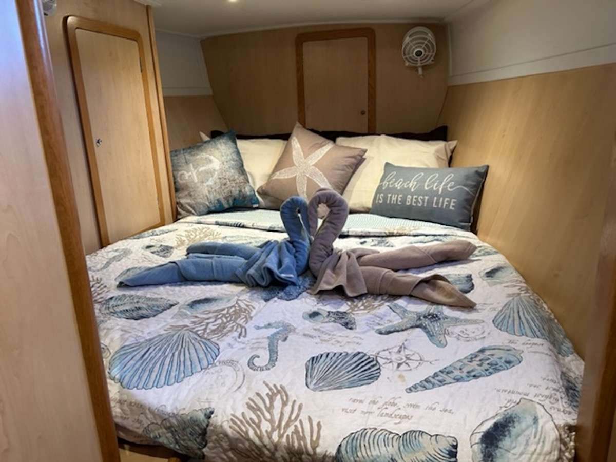 The well known large platform design creates an incredibly stable yacht for up to eight guests in four cabins. Designed and built in Durban, South Africa, MANNA has proven to be a reliable and comfortable yacht.