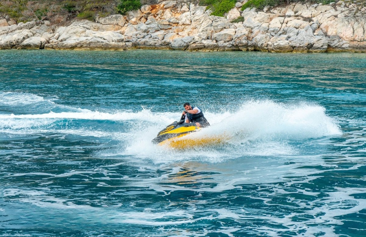 She cuts a sophisticated figure through the water, offers great interior deck space and boasts a great selection of water toys. Accommodation is for up to 12 charter guests in five suites who will be looked after aboard by a crew of 7.