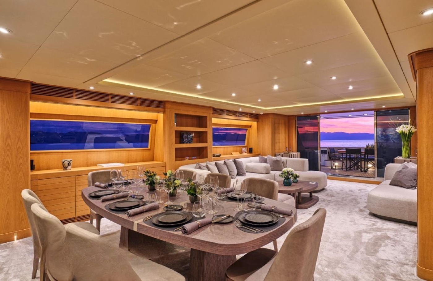 Motor yacht TIGRA features an open flybridge which creates a wonderful sociable area for guests to dine, sunbathe or simply sit back on a sofa and watch the ocean roll by.