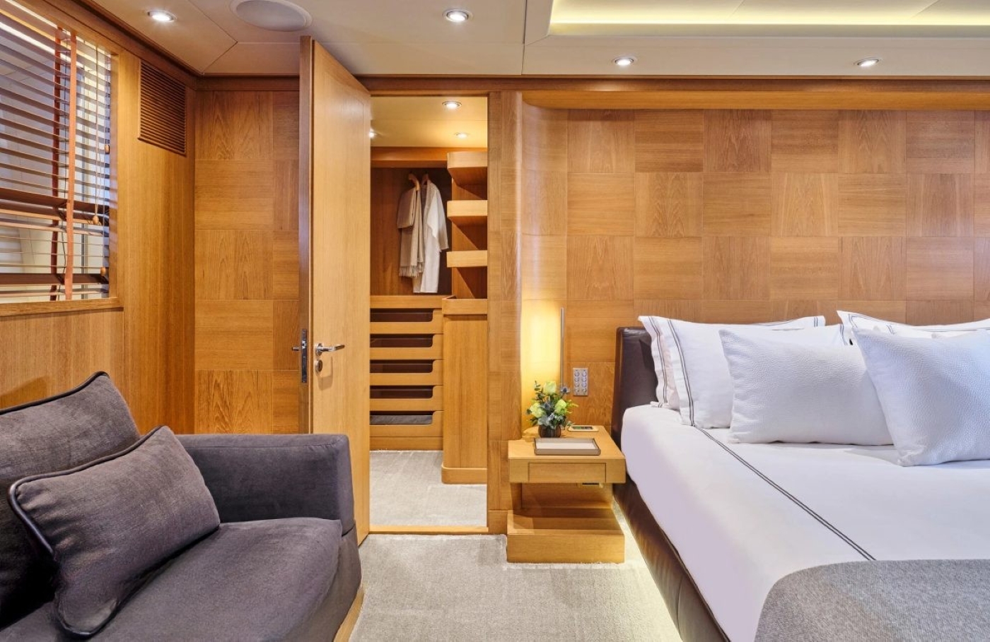 She cuts a sophisticated figure through the water, offers great interior deck space and boasts a great selection of water toys. Accommodation is for up to 12 charter guests in five suites who will be looked after aboard by a crew of 7.