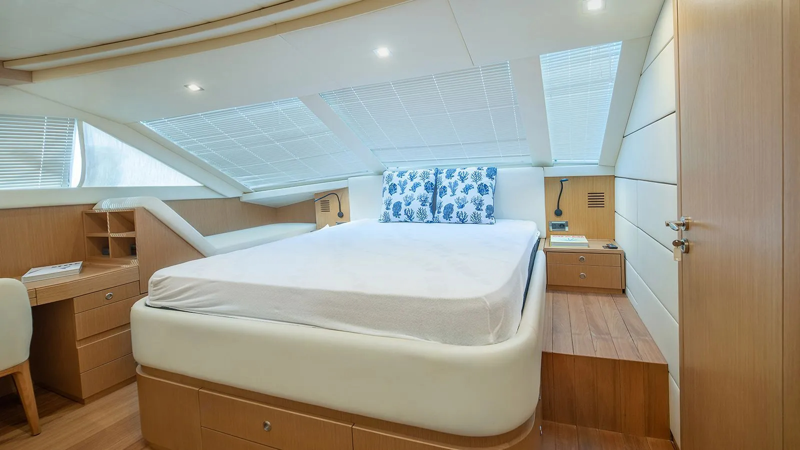 Motor yacht MELI is a 27.52m (90' 3") Ferretti 881 flybridge offering ample deck spaces and al fresco areas for charter guests to soak up the sun wherever their charter takes them. Presenting in immaculate condition thanks to continuous upgrades, she can accommodate up to 12 guests in five suites who will be looked after by a crew of five.