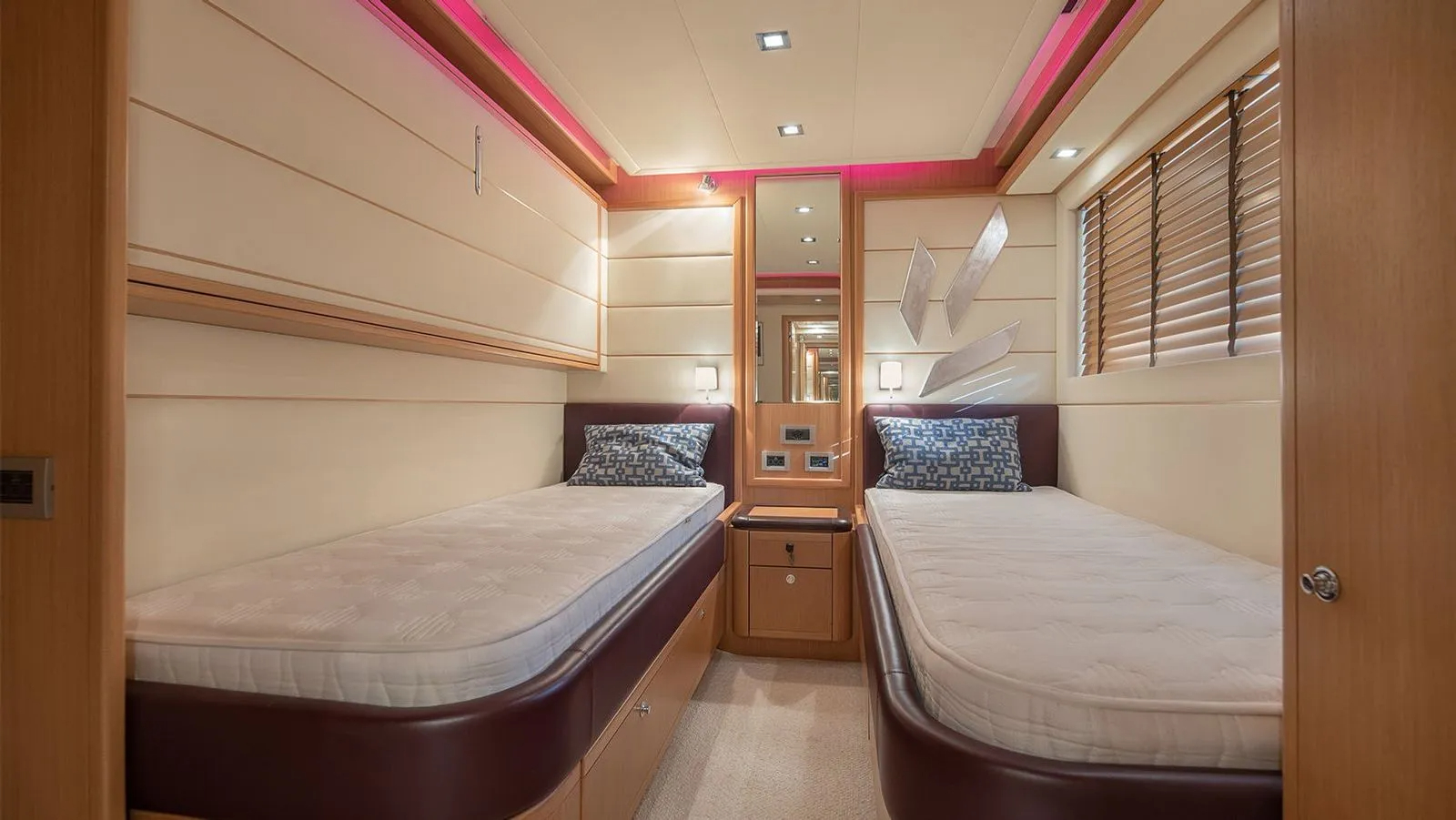 NOTABLE FEATURES OF MELI: ~Unique F881 with five cabin layout ~Sundeck jacuzzi ~Contemporary interior ~ Up-to-date water toys including jet skis ~At anchor and underway stabilisers ~ Air conditioning ~WiFi