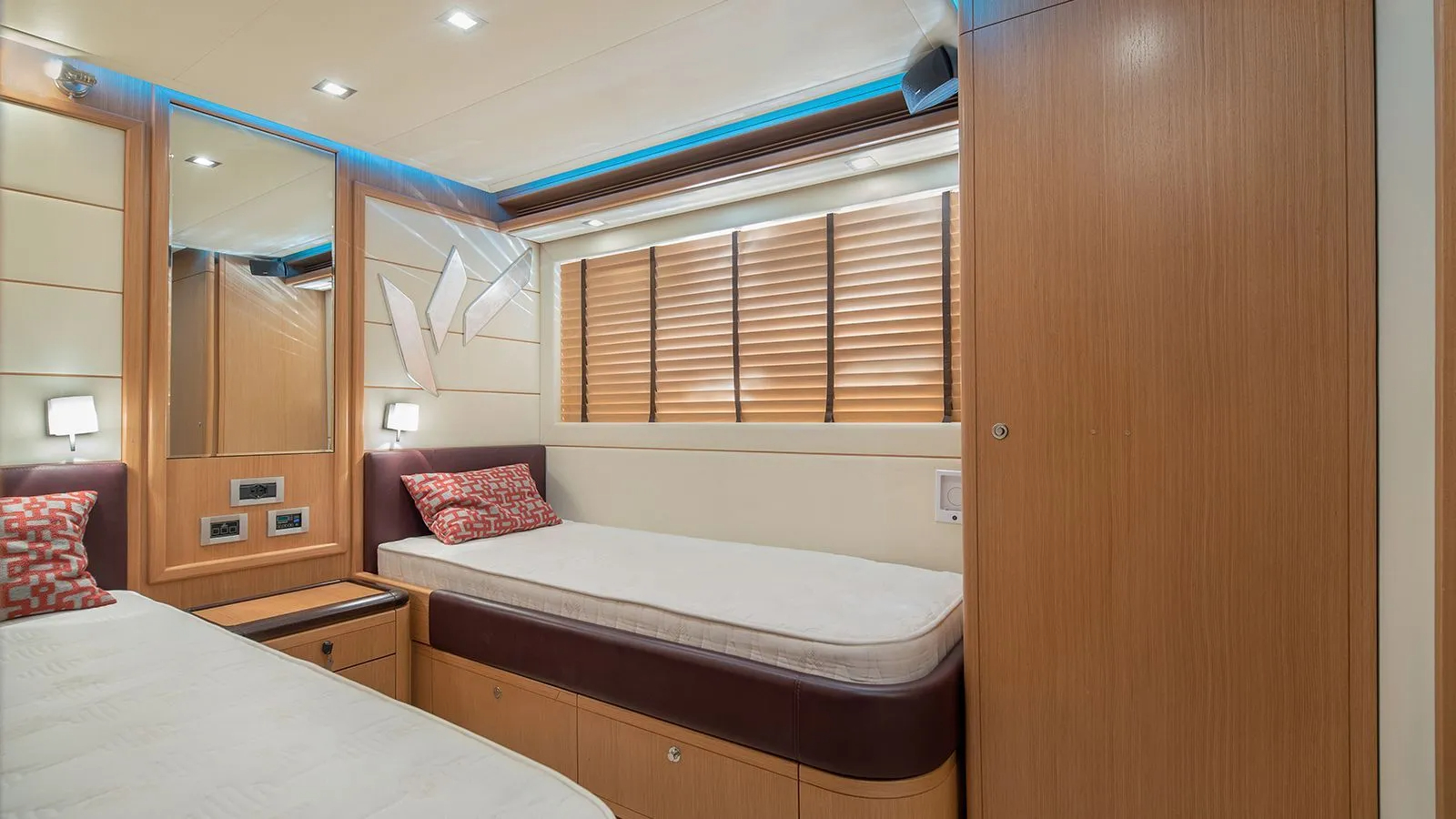 Presenting in immaculate condition thanks to continuous upgrades, she can accommodate up to 12 guests in five suites who will be looked after by a crew of five.