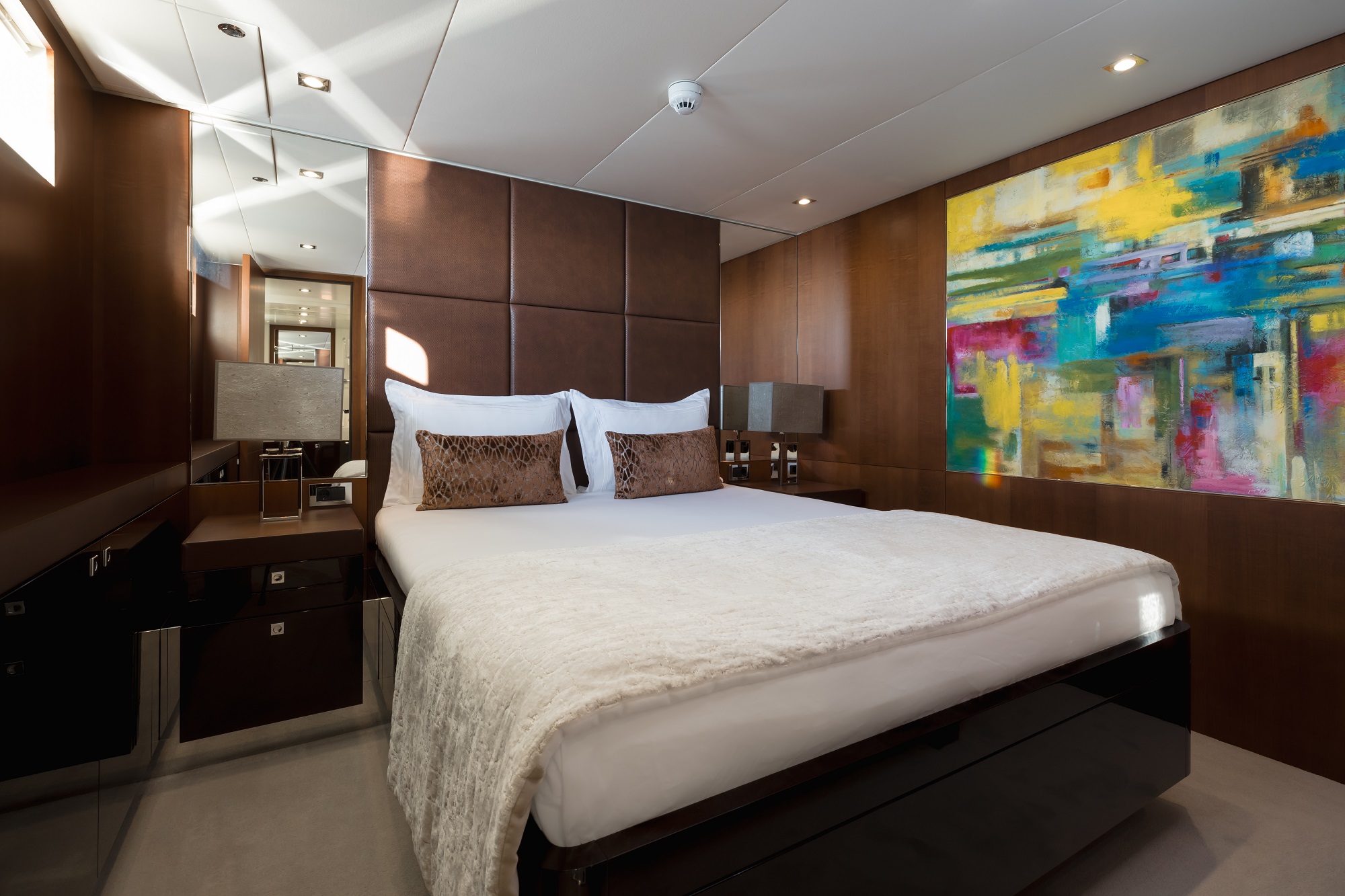 The four luxury staterooms are on the lower deck and configured as one king-sized master suite, two queen-sized doubles and one regular double. All the staterooms benefit from the luxury and privacy of ensuite bathroom facilities and are decorated in a rich, classic palette of colours.