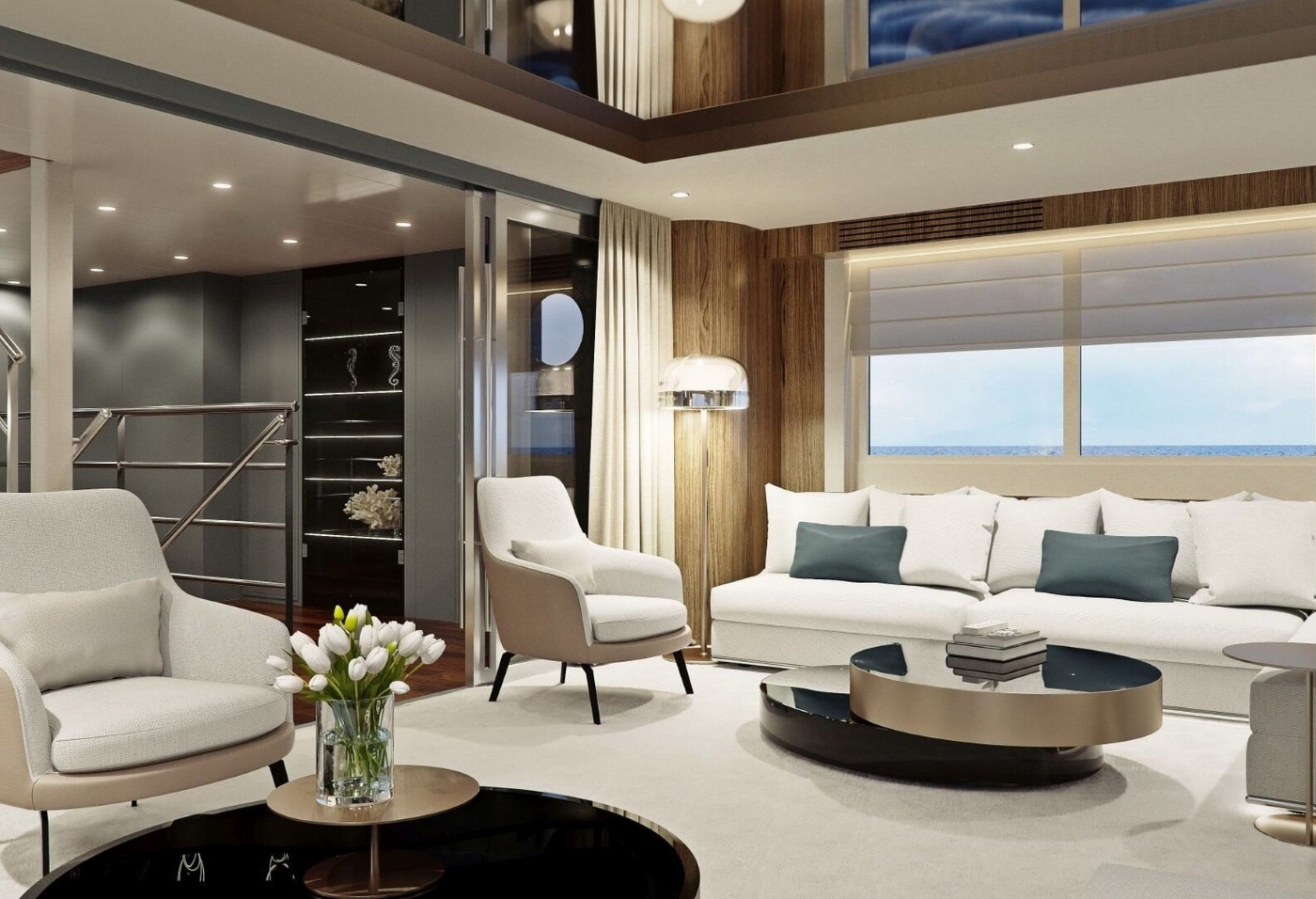 The interior is spectacular with a huge main salon, cinema room, gym and wellness area featuring a sauna and massage table. There is also a multipurpose room on the lower deck with can be a cabin, playroom or office.