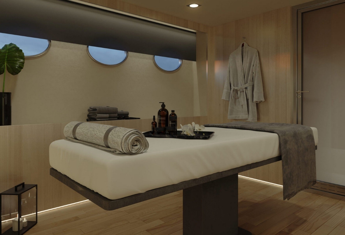 NOTABLE FEATURES OF BLACK SWAN: ~Available for exclusive charter for 20 guests ~Deck jacuzzi ~Multiple interior and exterior lounge spaces ~Cinema room ~Gym and exercise equipment plus great set of water toys ~Massage therapist ...