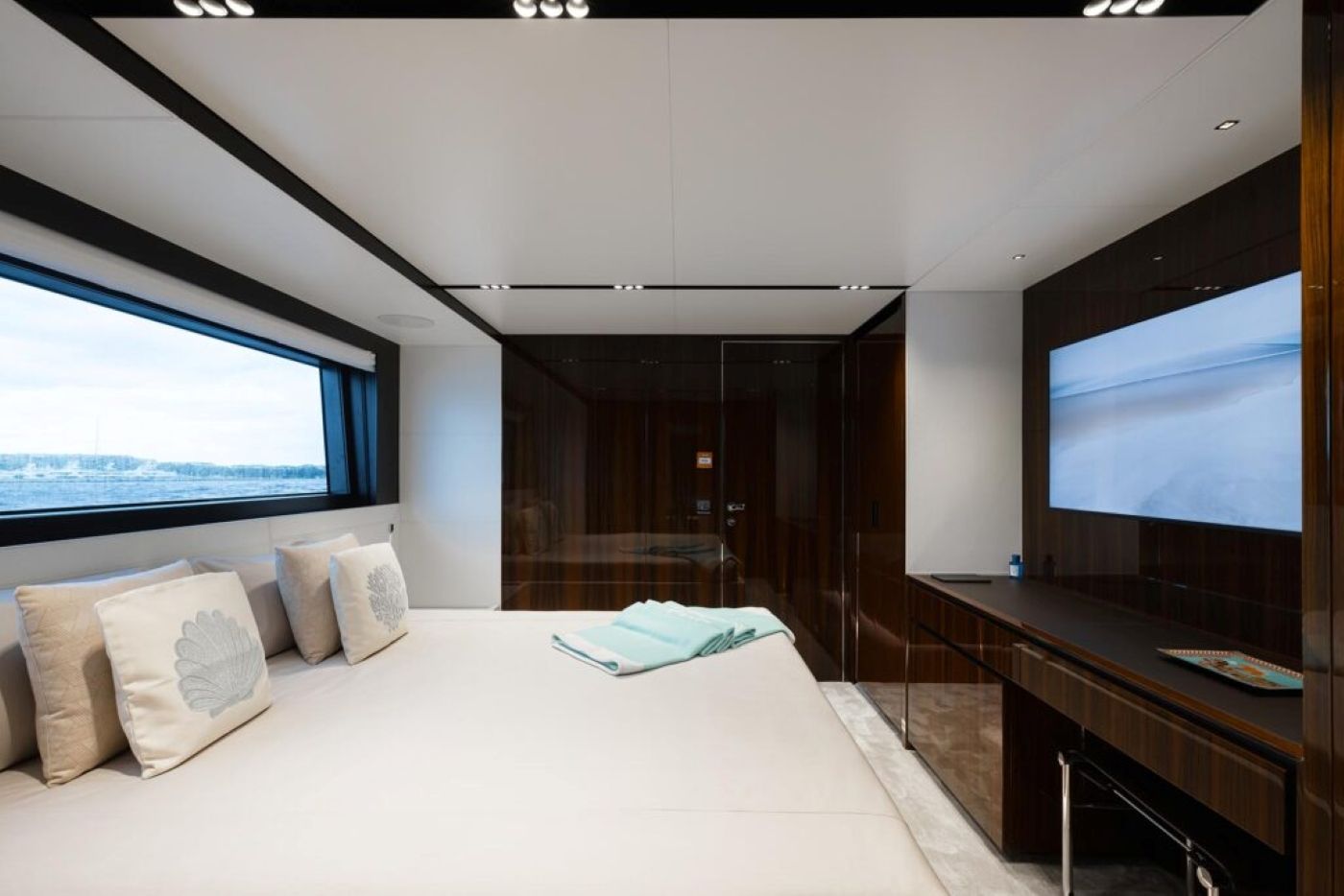 She is a premium vessel with a deck jacuzzi, six luxury suites for up to 11 charter guests and a great selection of water toys, plus stabilisers to offer a very comfortable cruise.