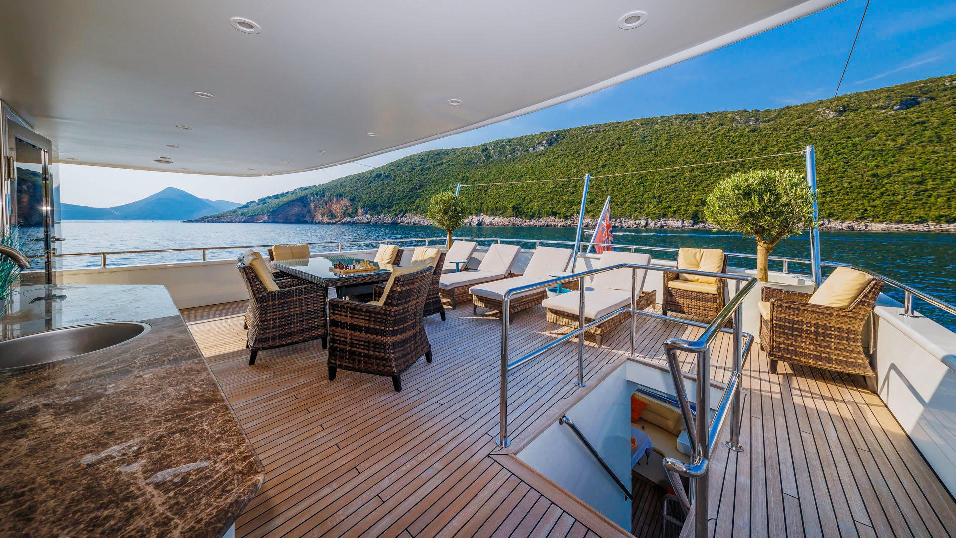 NOTABLE FEATURES OF APNA: ~Deck jacuzzi ~Gym/exercise equipment ~Great selection of water toys ~At anchor and underway stabilisers ~Air conditioning ~WiFi