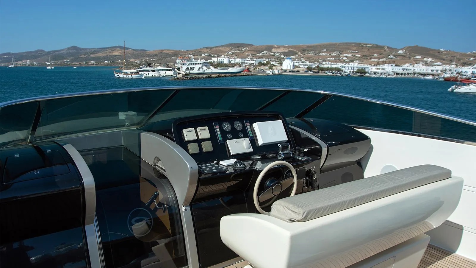 Forward on the sun deck is a lounge and sunbathing area filled with comfortable stylish furnishings and a helm station. Aft of the sky lounge is a cosier terrace from where guests can enjoy the far reaching views out from the stern.