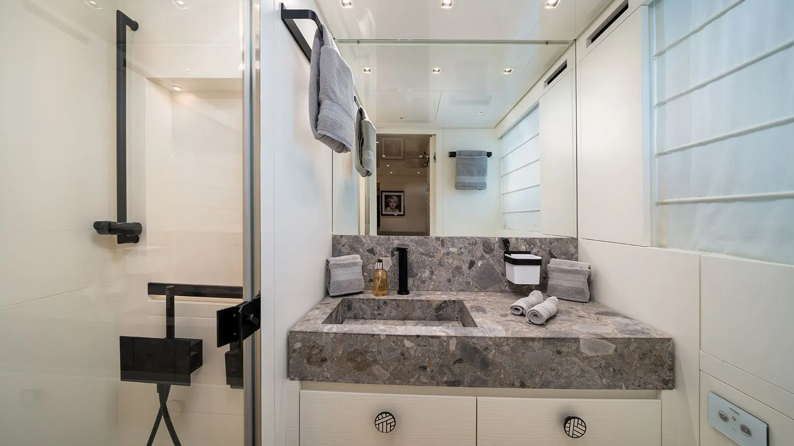 The lower deck cabins are decorated to complement the master and are very spacious and light configured as two double and two twin.